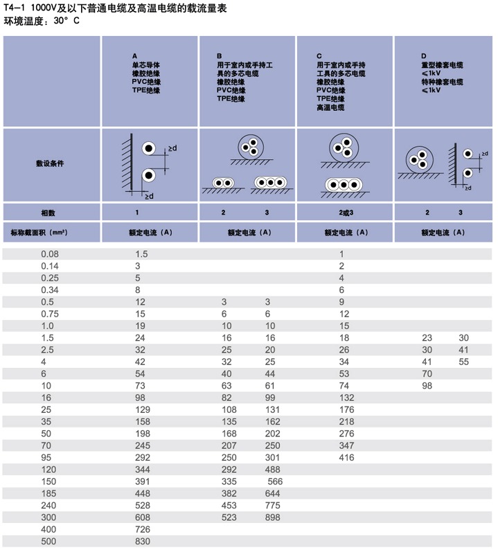 V-K及H05VV5-F等产品,我们引用了德国的DIN VDE 0298的相关表格提供给客户以便参考。 |